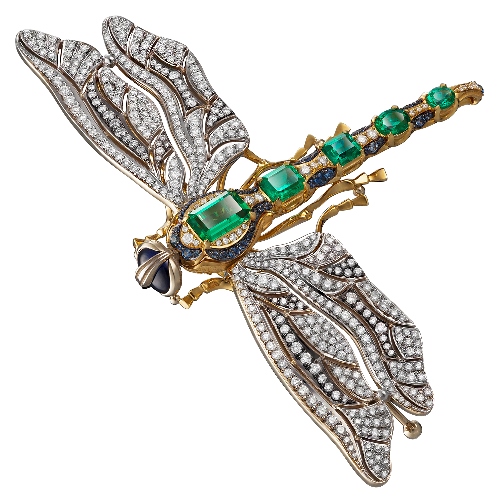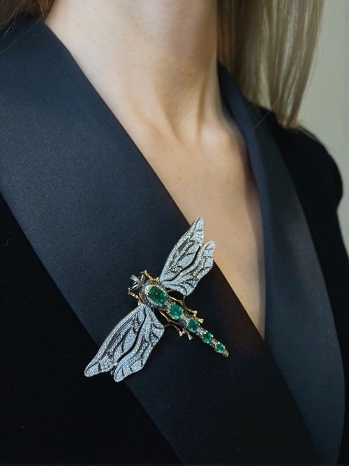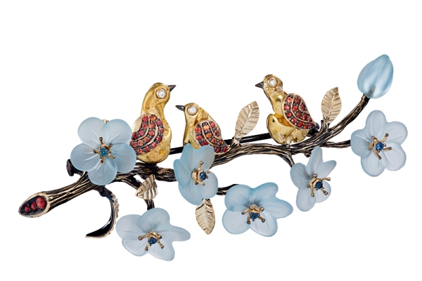 Брошь Сова с цитрином, оранжевыми сапфирами, белыми и черными бриллиантами выполнена в единственном экземпляре.