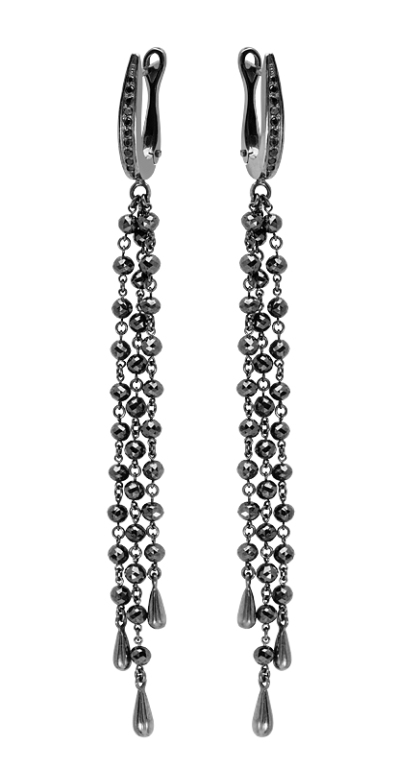 Характеристики вставок: 1 Жемчуг барочный 18,7, 478 Бриллиант черный облагороженный Кр 57 3,243, 39 Бриллиант Кр 57 0,419 3/5А.