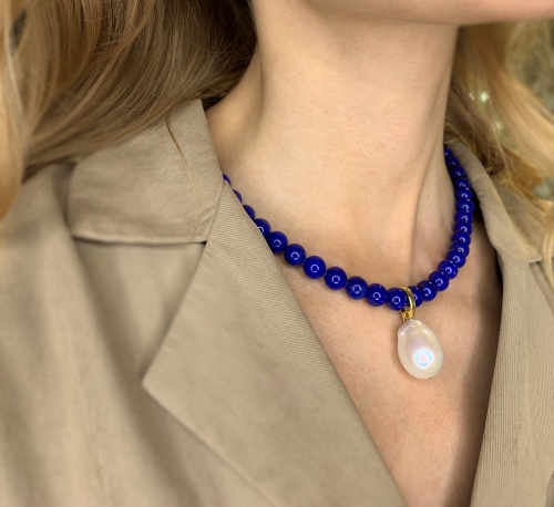 Характеристики вставок: 2 Жемчуг барочный 65,535, 2 Опал 0,69, 82 Бриллиант Кр57 0,50, 187 Сапфир 1,528.
