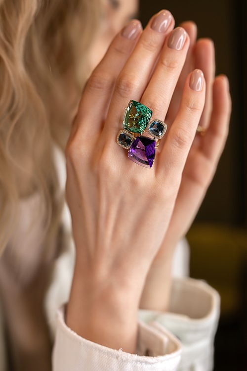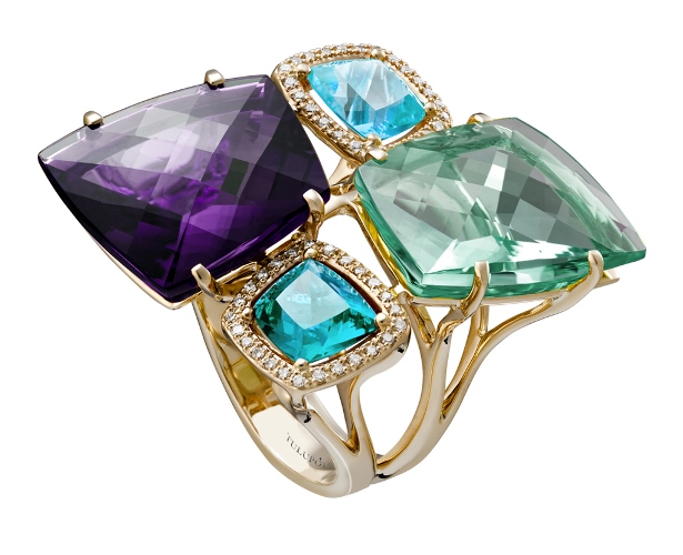 Кольцо с розовым кварцем и бриллиантами.