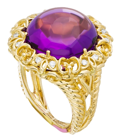 Кольцо с аметистом, топазами "London Blue" и бриллиантами.