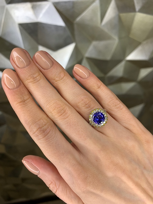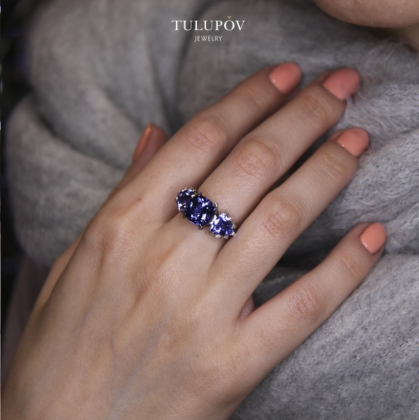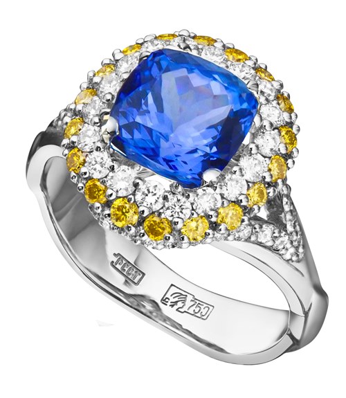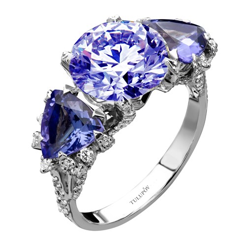 Характеристики вставок: 1 Танзанит 3,230, 96 Бриллиант Кр 57 0,596 3/4 А.