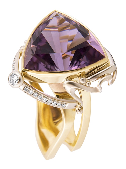 Кольцо с аметистом, рубинами и бриллиантами.