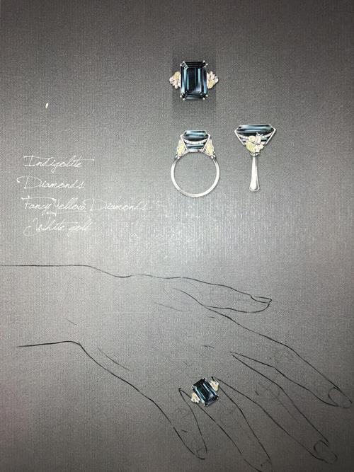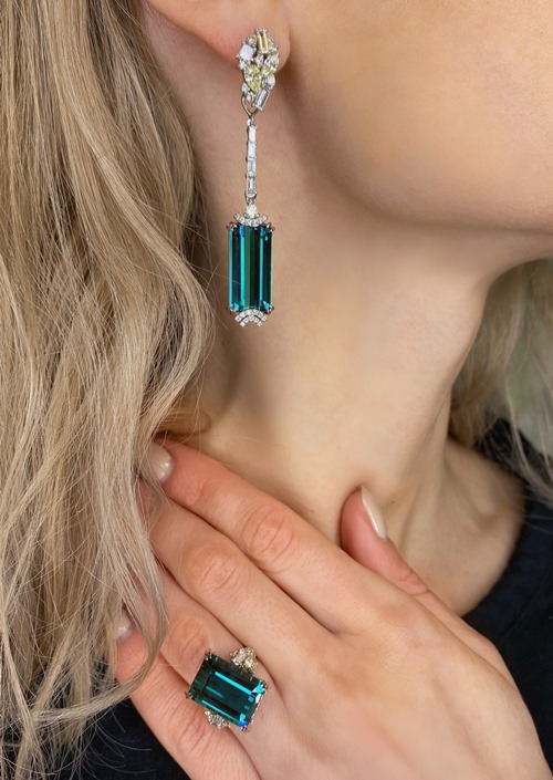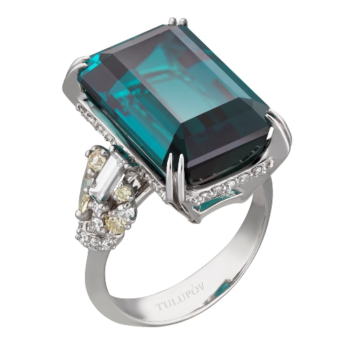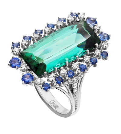 Кольцо с турмалином, белыми и черными бриллиантами.