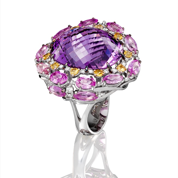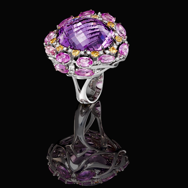 Кольцо с аметринами и цветными сапфирами.