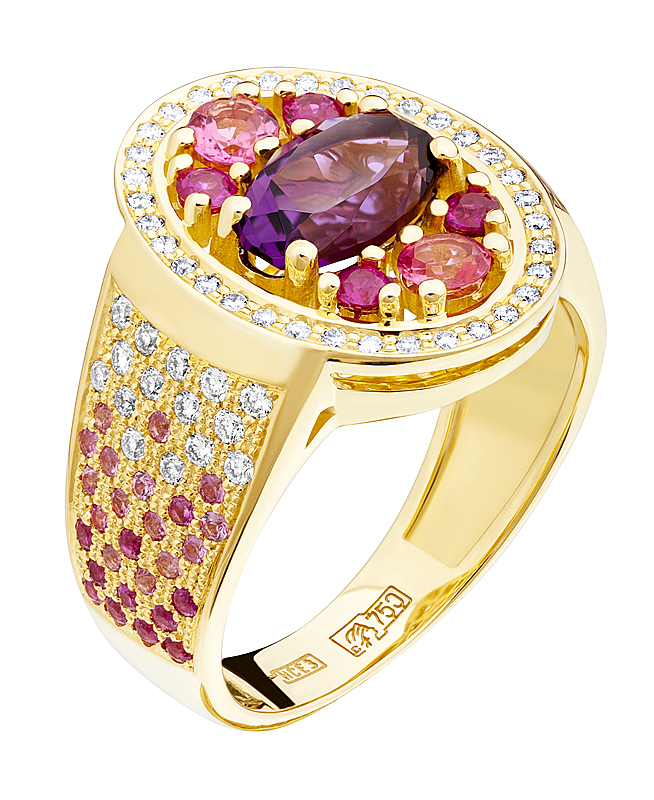 Характеристики вставок: 2 Аметист 21,780, 2 Жемчуг Морской 31,430, 2 Родолит 4,99, 2 Бр Кр 57 0,050 3/3А.