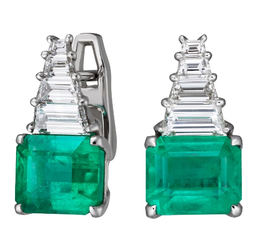 Серьги с изумрудами, аквамаринами и бриллиантами фантазийных огранок.