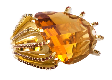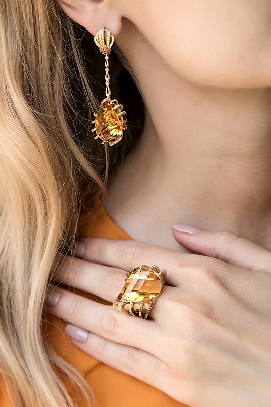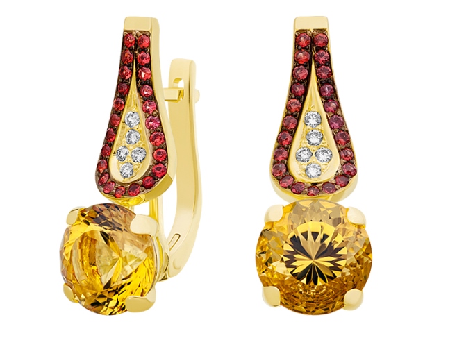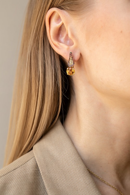 Серьги с цитринами, оранжевыми сапфирами и бриллиантами.